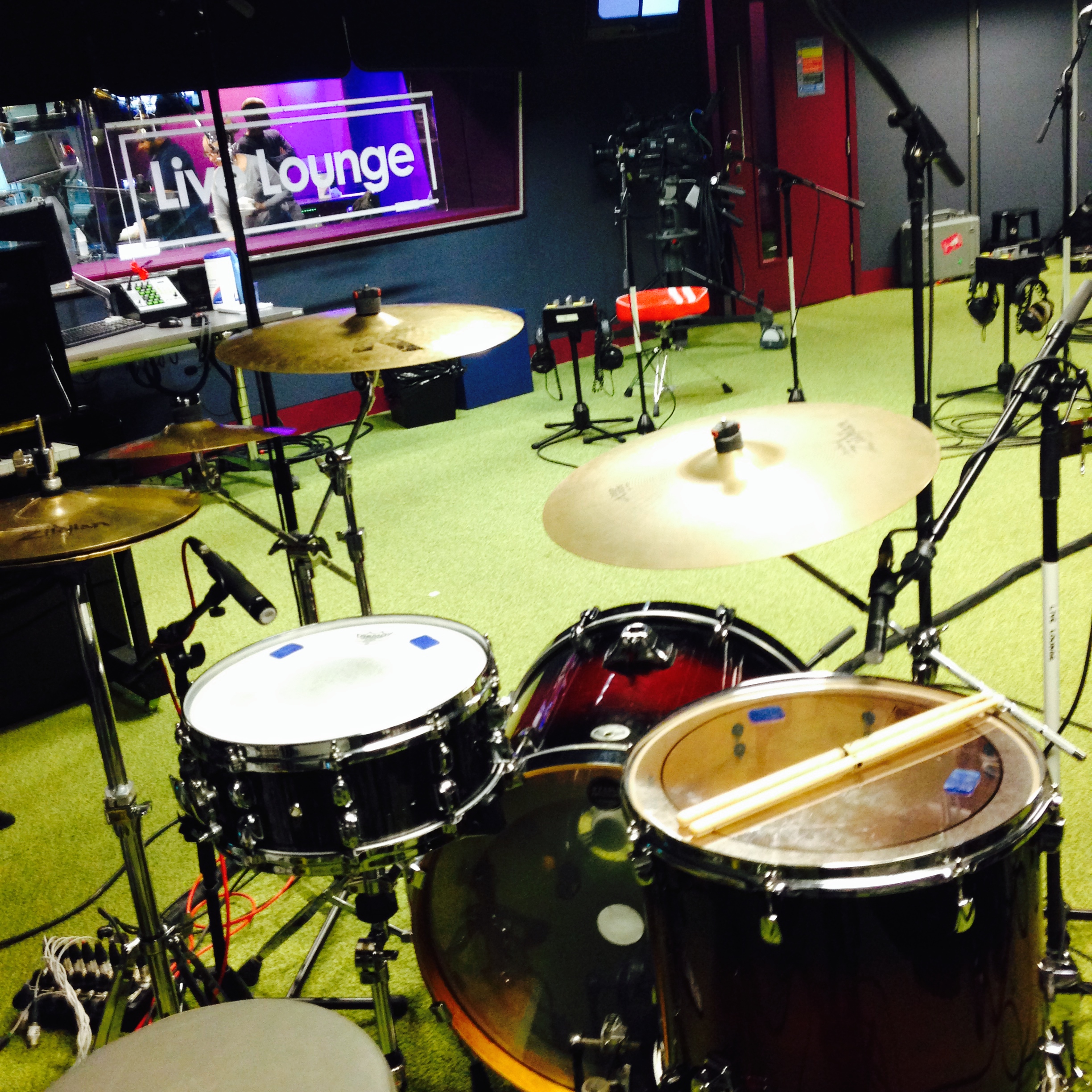 My view in the Live Lounge studio playing for Chlöe Howl.