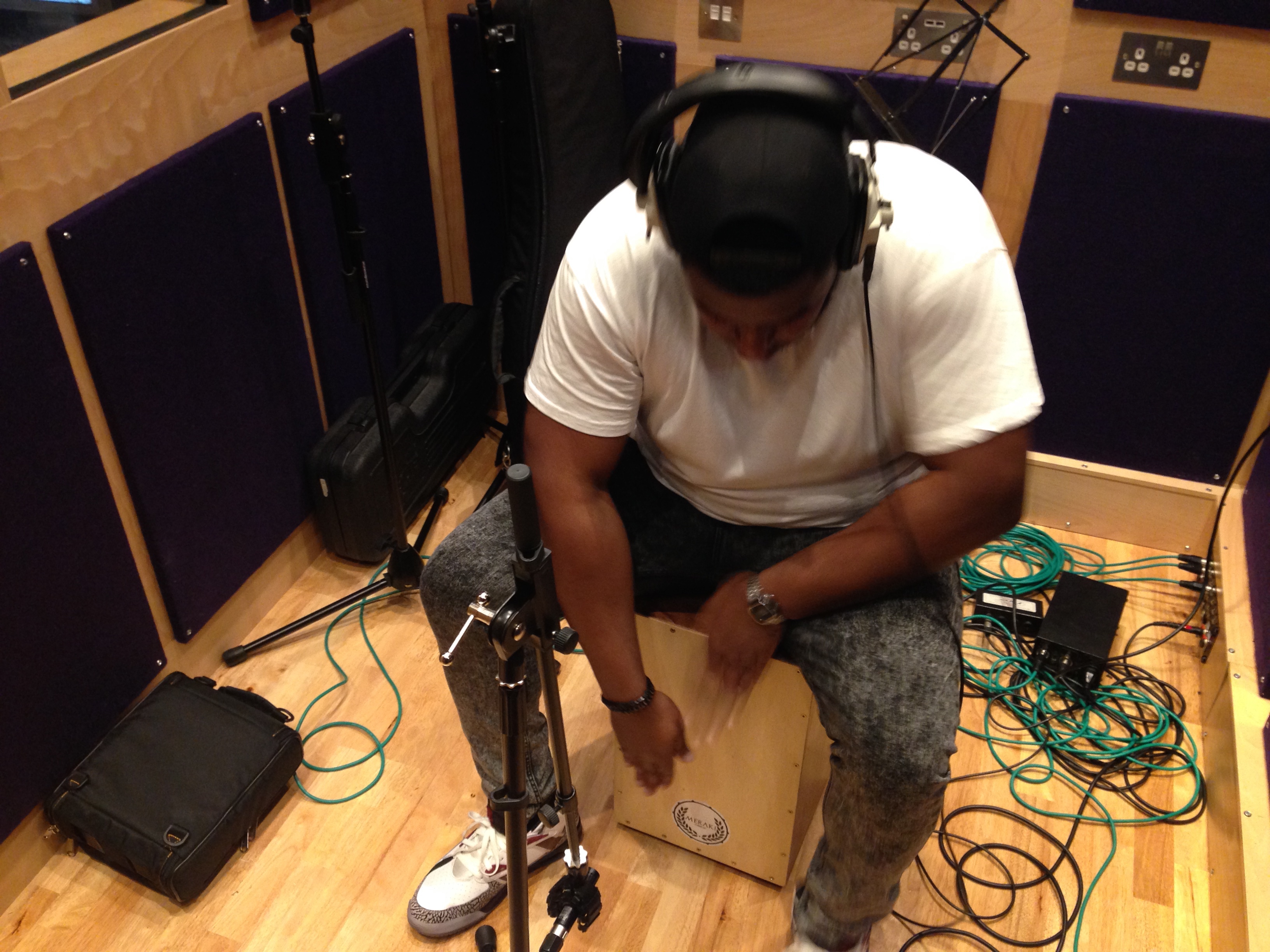 Me laying down cajon at Resident Studios for a Vanquish song that i arranged